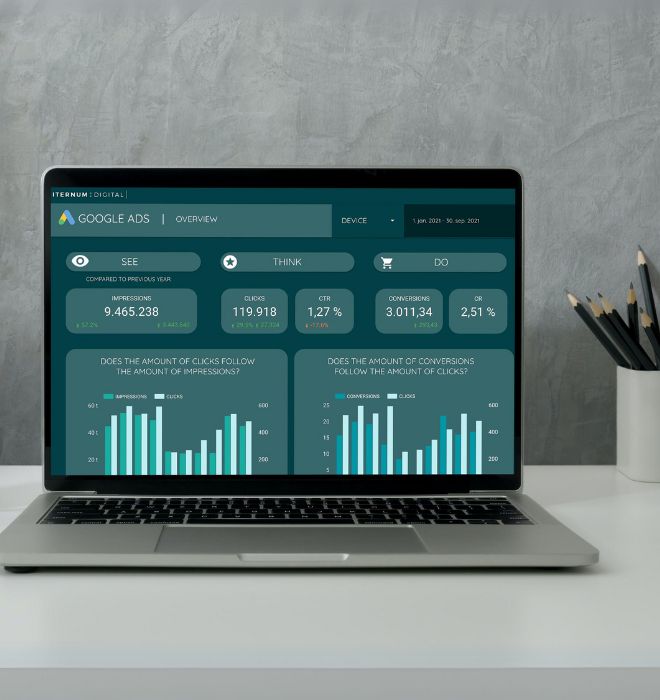It is Iternum Digital’s task to pass on important information from the data you buy from Google, Facebook, Bing, etc., or the budget that you invest in SEO. We value transparency and we always aim to explain the complicated things in a simple way. That is why we always use Dashboards for reporting, so that our customers continuously can follow the performance.