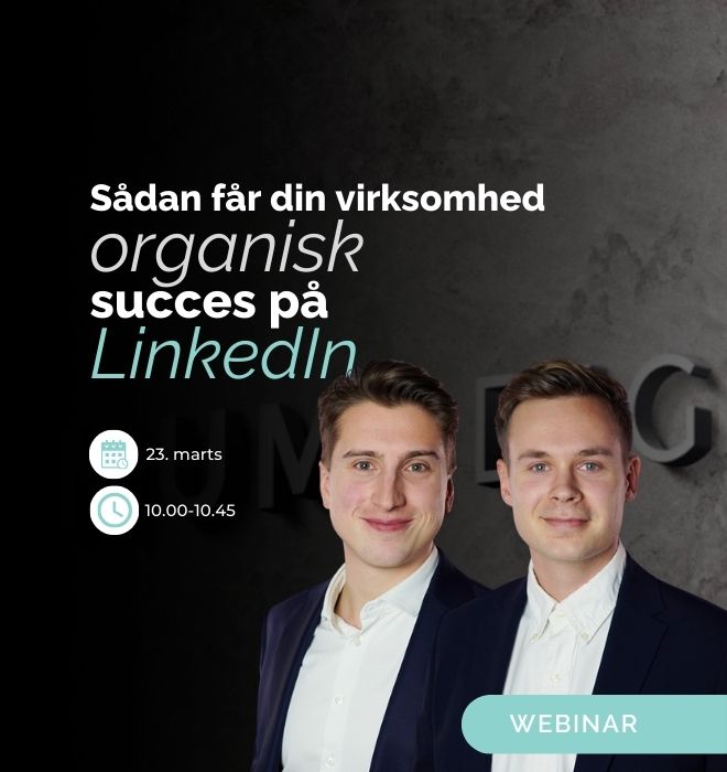 Torsdag den 23. marts afholder vi et webinar omkring, hvordan du får mest muligt ud af LinkedIn organisk, og hvordan du skal arbejde med algortimen for at opnå gode resultater.