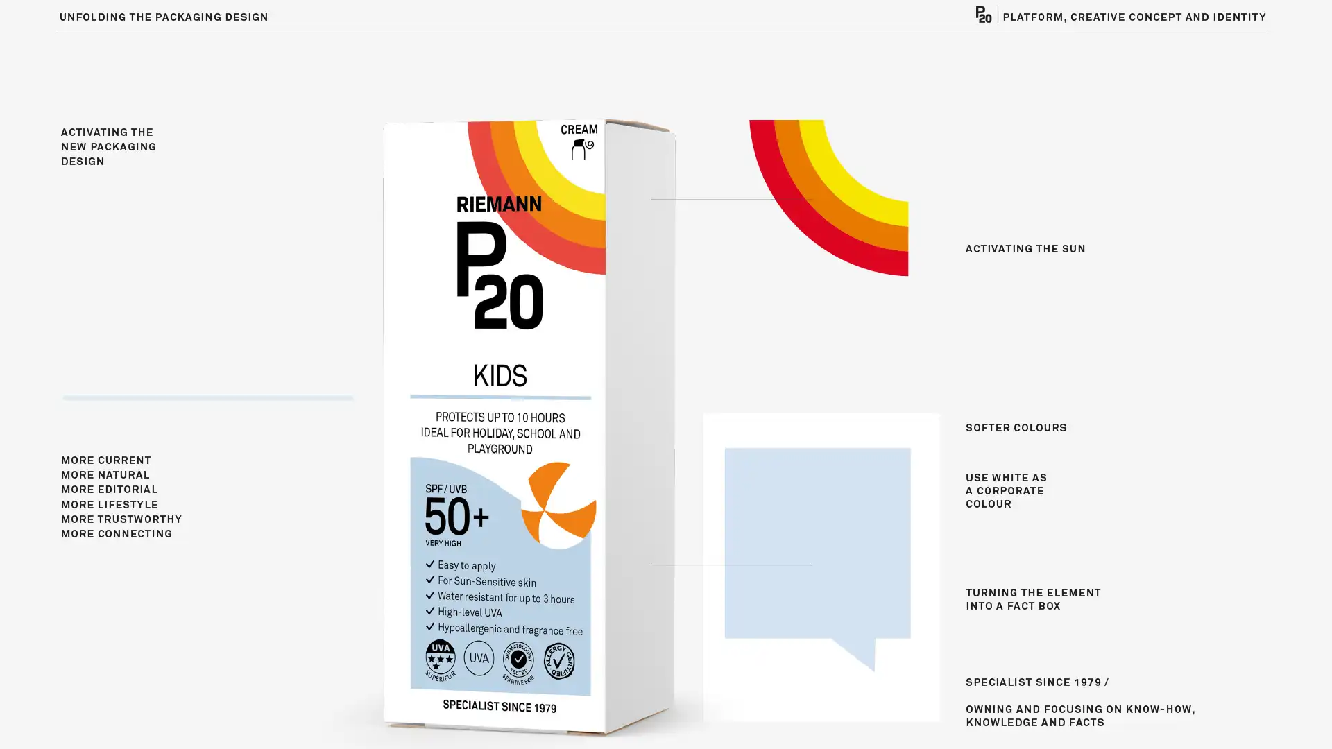 To build and expand awareness of the P20 brand and products, we focused on knowledge, as Riemann P20 aimed to educate consumers to make better sun protection decisions. Through the P20SUNFACTS expert concept, we created a symbiosis of awareness and knowledge, revitalizing P20 as a brand.